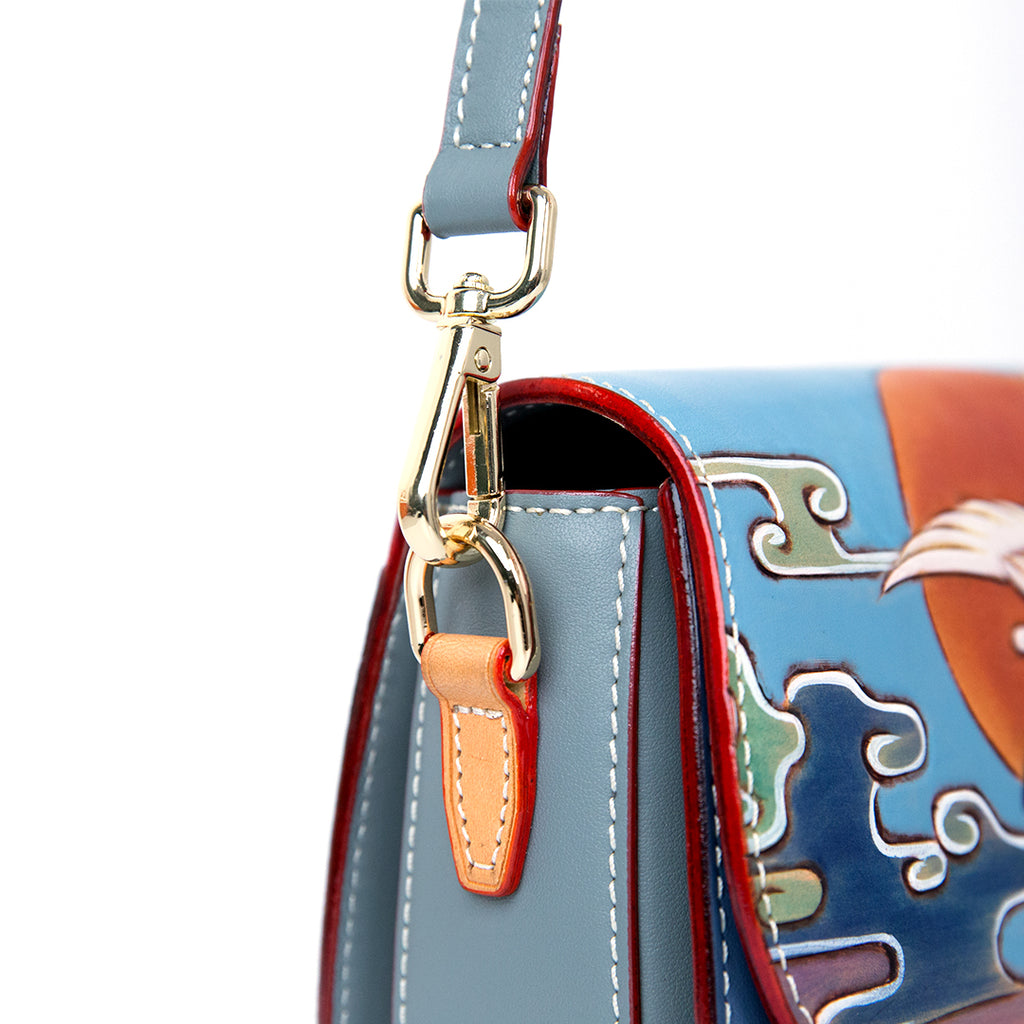 - Fill the bag with tissue paper to help maintain its shape and absorb humidity, and store it in the provided flannel bag